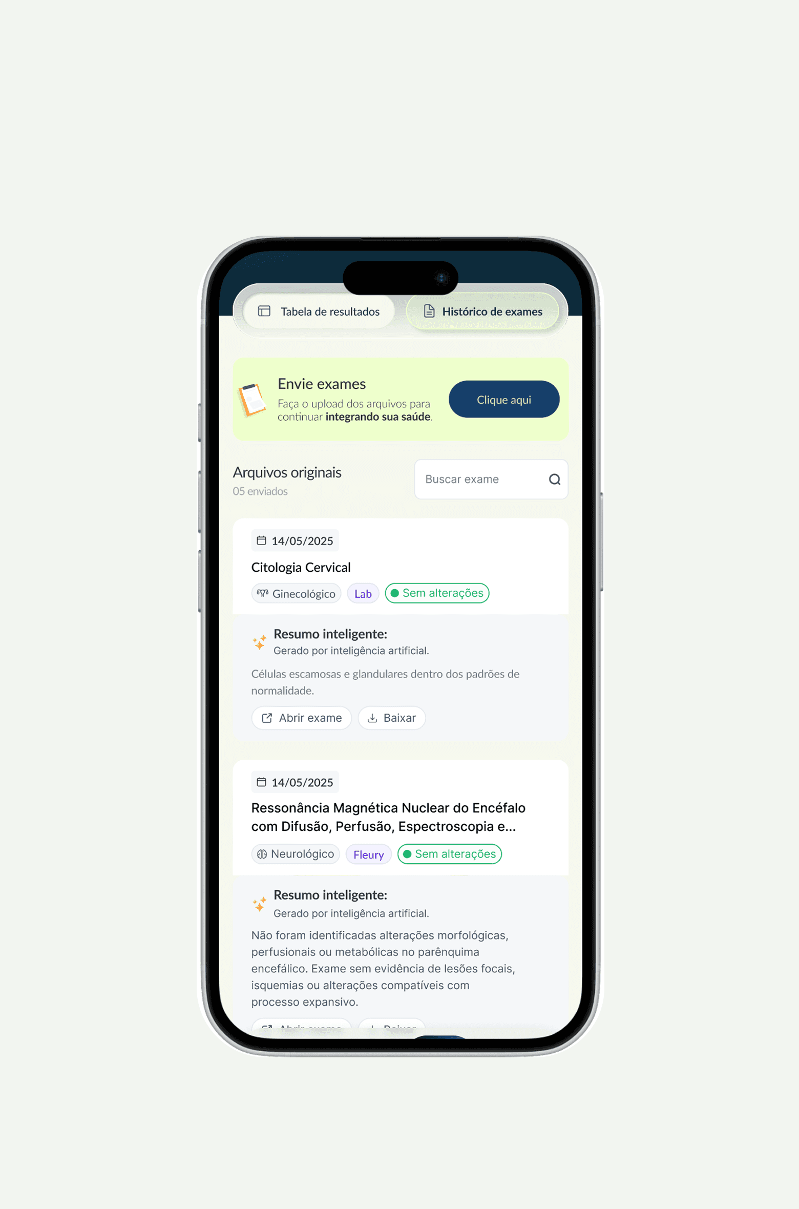 Acesse todos os arquivos dos exames que você enviou, organizados em um único lugar.